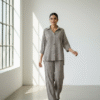 + ShippingUnwind in style with our Cafe Couture Cord Set, designed for effortless sophistication. Crafted from lightweight, breathable fabric, this set features a relaxed-fit button-down shirt paired with wide-leg trousers, offering comfort without compromising on elegance.