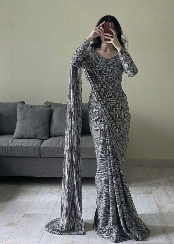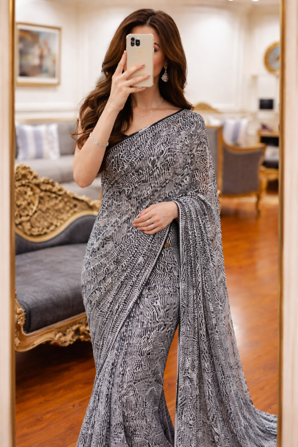 + ShippingStep into effortless elegance with our Graphic Grace Printed Saree, designed to bring together fluid grace and contemporary charm.