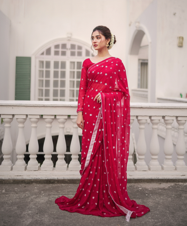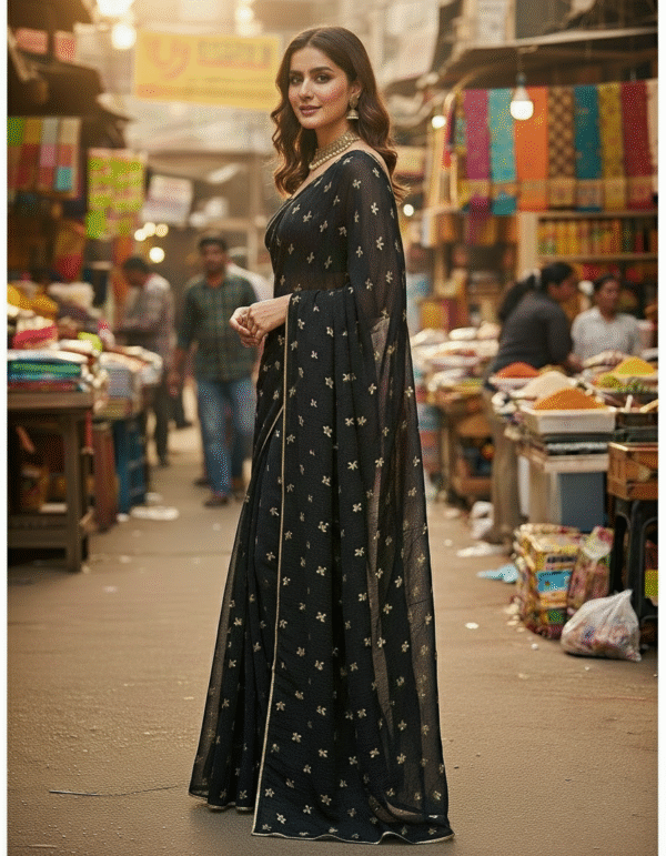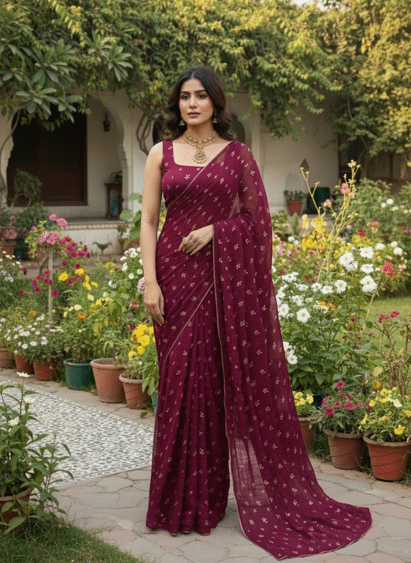 Wrap yourself in the timeless beauty of tradition with our Banarsi Chiffon Saree, available in all colors. Woven with intricate golden patterns on soft chiffon, this saree perfectly blends luxury with comfort. Lightweight and graceful, it drapes effortlessly making it the perfect choice for festive occasions, weddings, and formal gatherings.