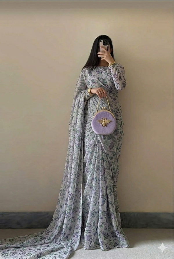 Crafted from lightweight, airy chiffon , this saree drapes beautifully, creating a soft, flattering silhouette that moves with you.