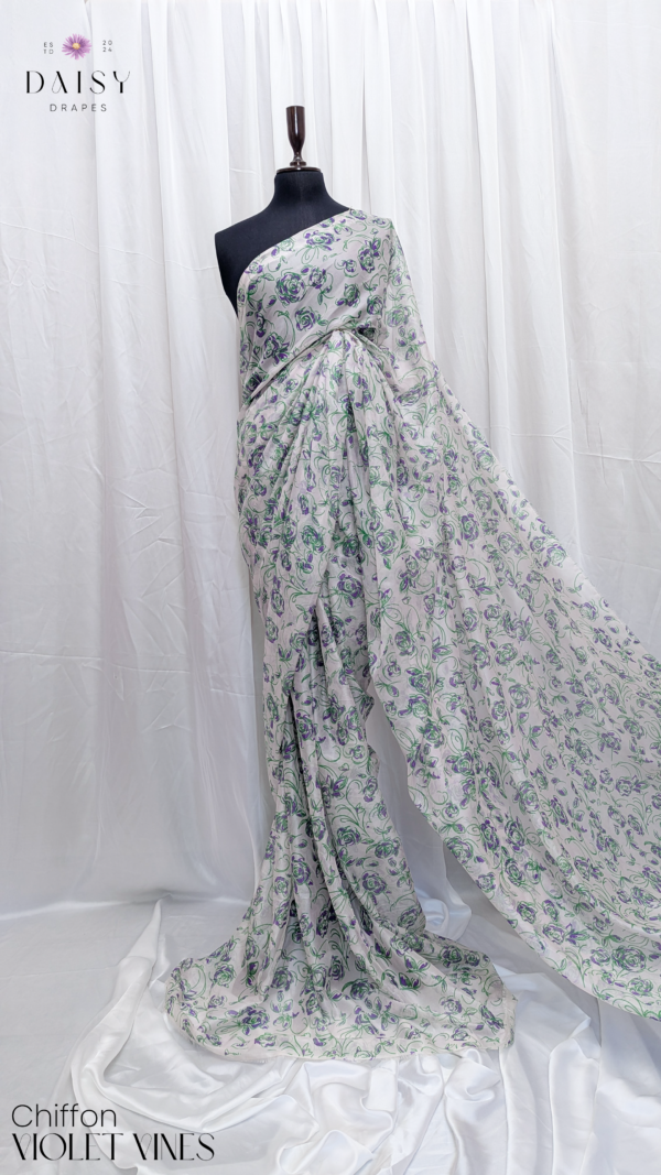 + ShippingUnveil effortless grace with our Violet Vines Printed Saree, a statement of fluid elegance and modern charm.